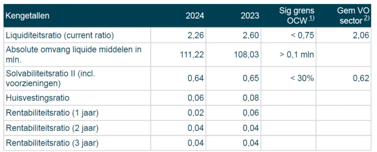 De financiële kengetallen van CVO bevinden zich ruim boven de onder- en bovengrenzen van de signaleringswaarden die OCW hanteert. Dit bevestigt dat CVO financieel gezond is, over voldoende veerkracht beschikt en in staat is om aan zijn verplichtingen te blijven voldoen.