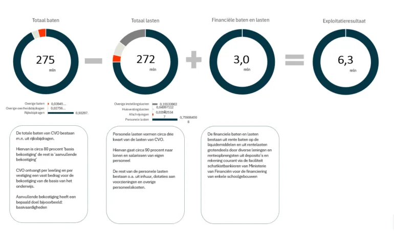 Het resultaat van circa € 6,3 mln. (2,3%) wordt deels veroorzaakt door een andere manier van het administreren van het grootonderhoud op onze onderwijsgebouwen. Met onze sterke buffers kunnen we blijven investeren in goed onderwijs voor al onze leerlingen.